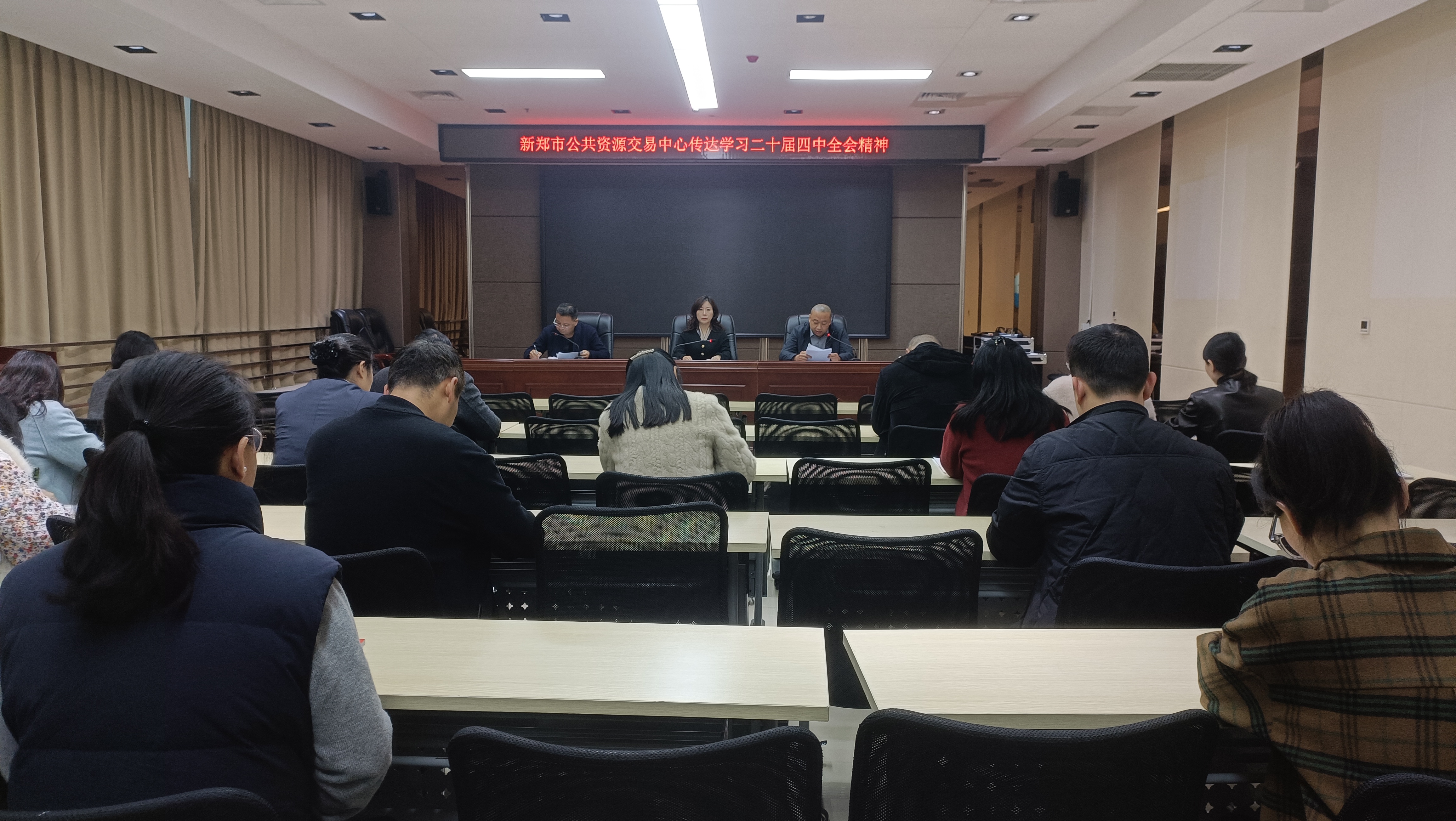 11月3日,新郑市公共资源交易中心组织召开全体会议,集中传达学习党的二十届四中全会精神、省委常委会扩大会议精神、郑州市委常委会扩大会议精神、新郑市委常委会扩大会议精神及新郑市前三季度经济运行分析会会议精神。