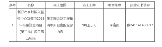 新郑市乡村振兴服务中心新郑市2025年衔接资金项目(第二批)项目五标段合同订立信息公告