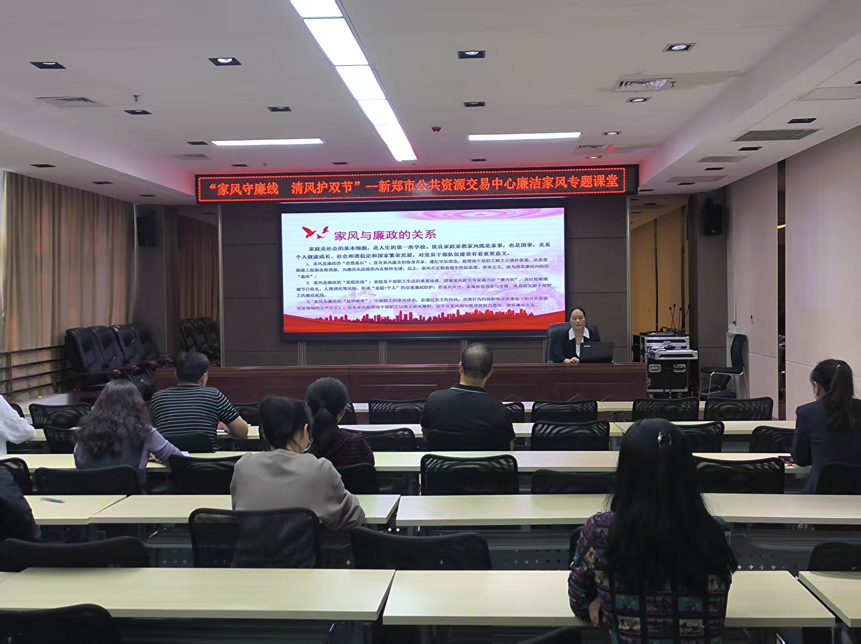 为深化党风廉政建设,以优良家风涵养廉洁风气,扎实筑牢国庆、中秋“双节”期间廉政防线,新郑市公共资源交易中心于9月29日组织开展廉洁家风专题小课堂,引导全体干部职工以家风正作风、以廉洁守底线,为双节期间作风建设拧紧“思想开关”,护航公共资源交易领域风清气正。